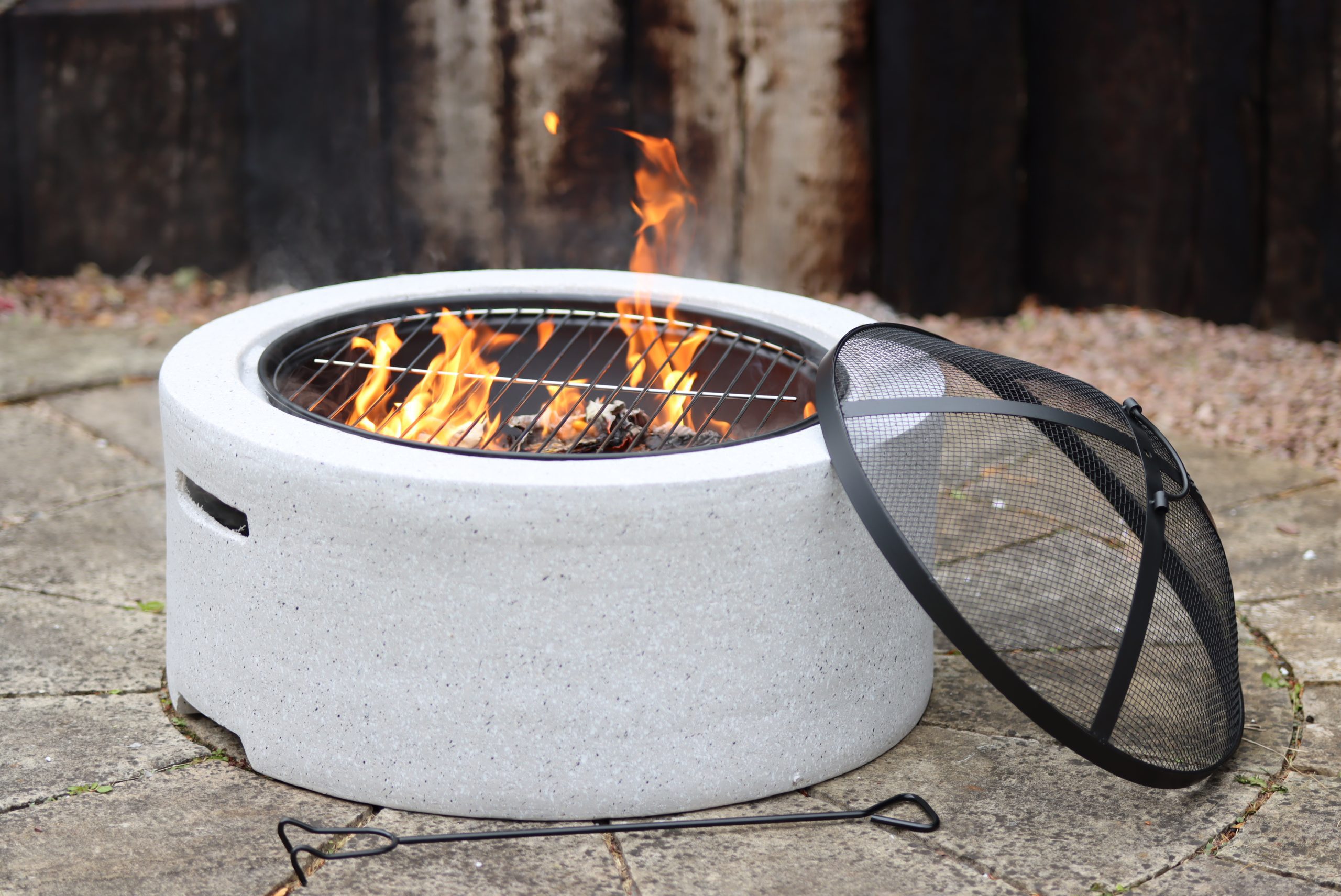 Cylinder MGO fire pit in dark grey, coated in heat resistant paint