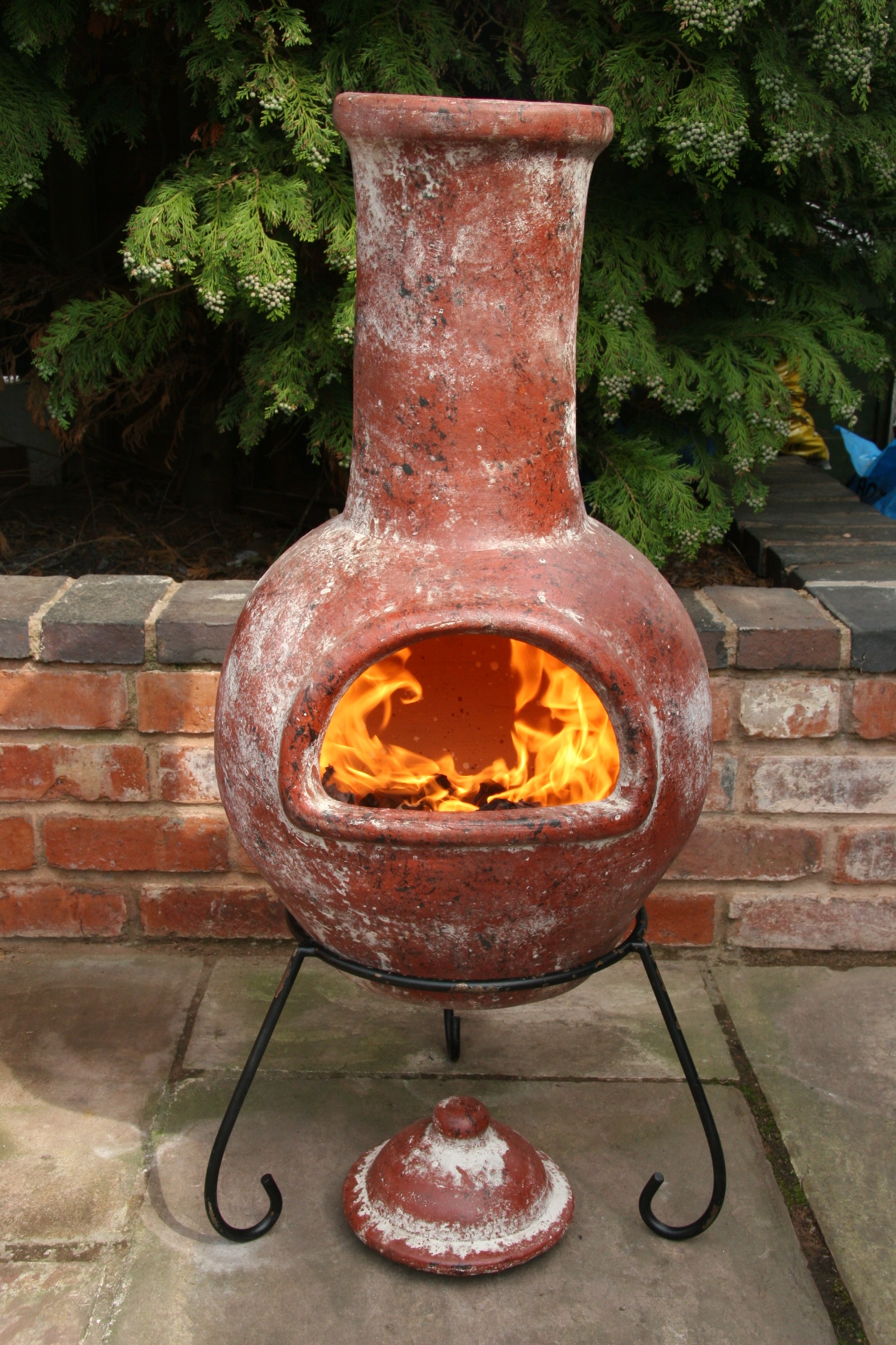 When first starting to use the chimenea, take the lid off and have a small fire. this strengthens the clay because it becomes used to the heat. When fired the clay absorbs the heat and retains it, acting as a radiator thus if a big fire is used when first starting off then there is a bigger likelihood of cracking appearing. This means do not have a roaring fire!