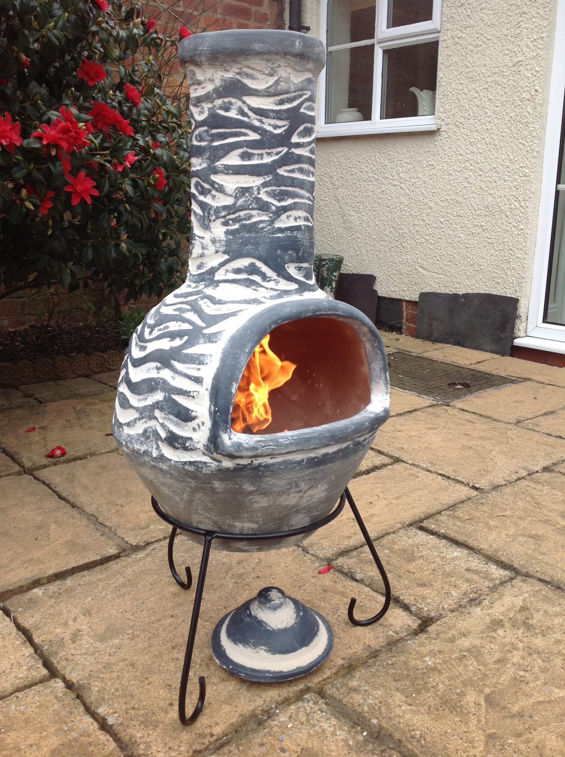 When first starting to use the chimenea, take the lid off and have a small fire. This strengthens the clay because it becomes used to the heat. When fired the clay absorbs the heat and retains it. Thus acting as a radiator, when a big fire is used when first starting off there is a bigger likelihood of cracking appearing on the clay. This means do not have a roaring fire!